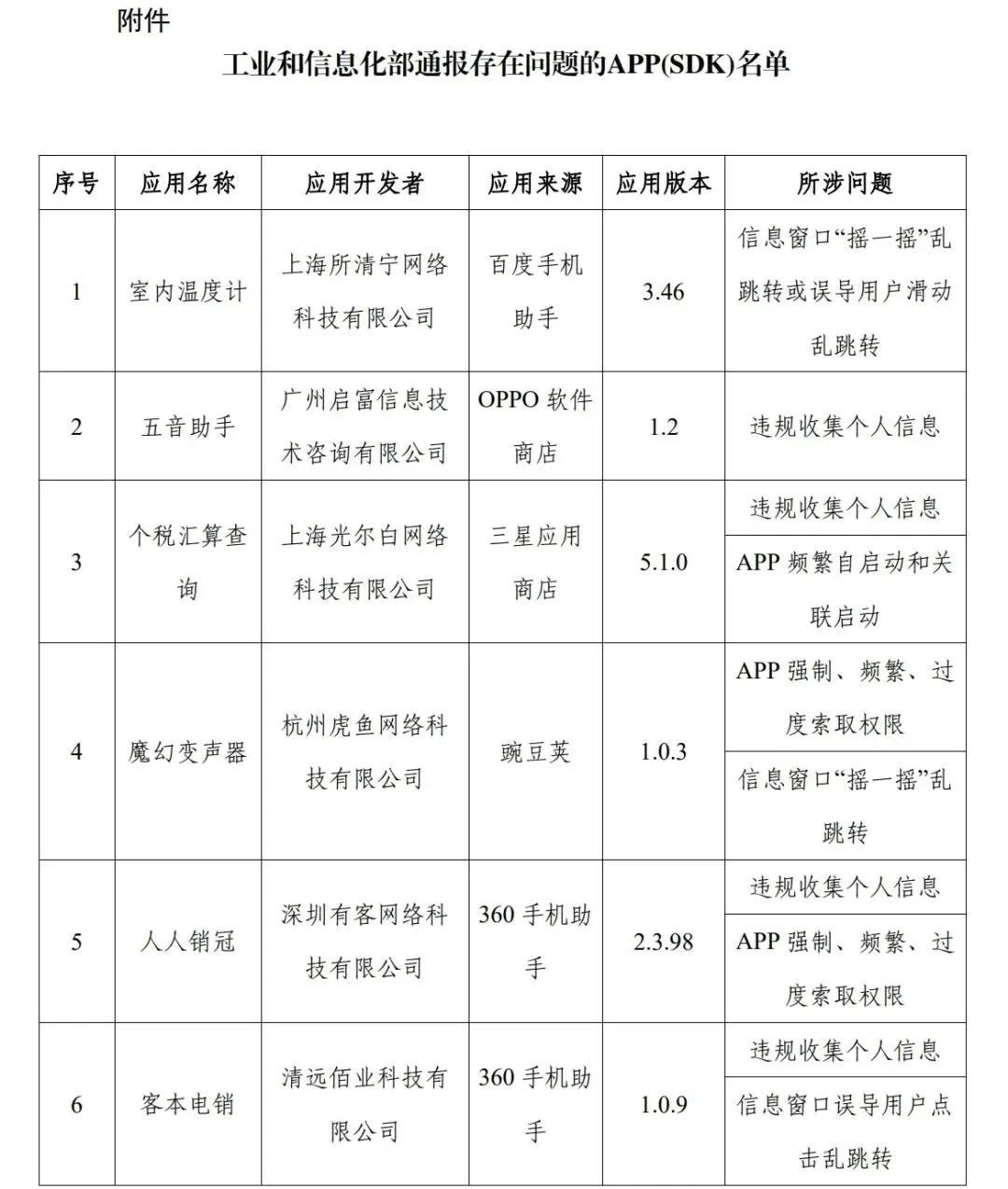 附件:工業(yè)和信息化部通報存在問題的APP(SDK)名單