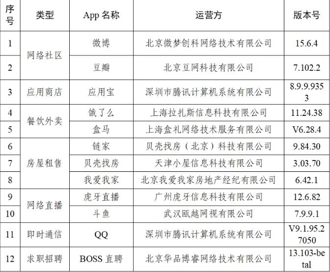 12款App運營方已在應用商店或者官網(wǎng)上架優(yōu)化改進版本(名單及版本號附后),并承諾升級版本持續(xù)保持合規(guī)水平?,F(xiàn)將App清單公布如下: