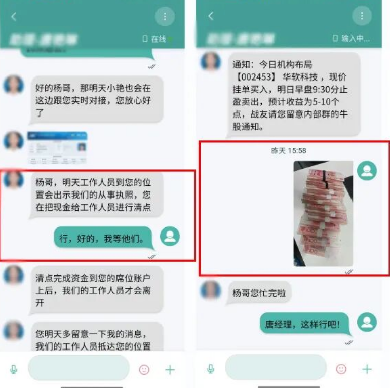 小額的盈利讓楊先生對(duì)這個(gè)平臺(tái)深信不疑。此時(shí),平臺(tái)所謂的“客戶(hù)助理”開(kāi)始聯(lián)系他,聲稱(chēng)有一個(gè)“穩(wěn)賺不賠”的大項(xiàng)目,需要追加大額投資。為了規(guī)避銀行轉(zhuǎn)賬的大額風(fēng)險(xiǎn)提示,對(duì)方還提出,將派“工作人員”當(dāng)面收取12萬(wàn)元現(xiàn)金,并現(xiàn)場(chǎng)為其辦理“入金”手續(xù)。
