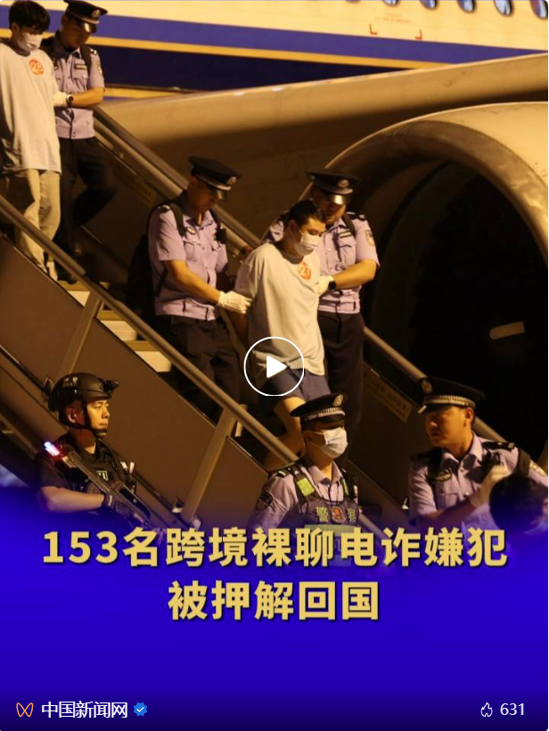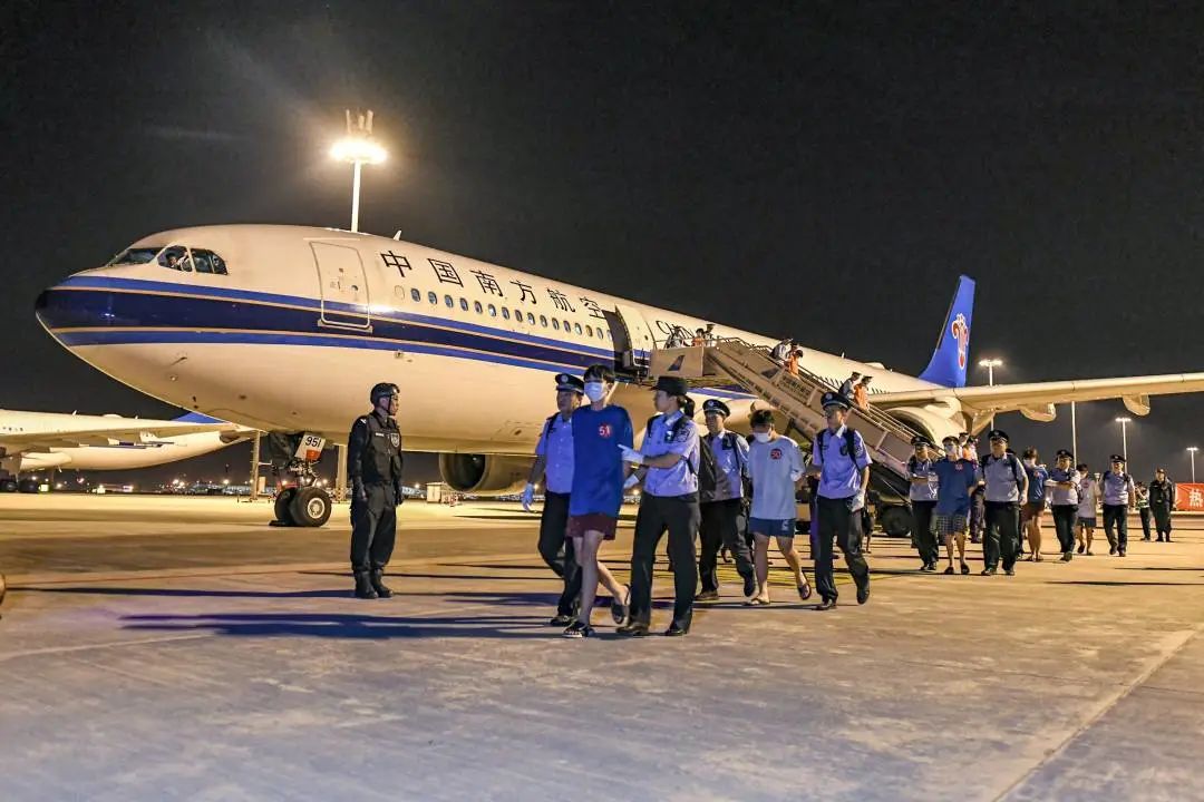 153名實施跨境裸聊敲詐的電信網(wǎng)絡(luò)詐騙犯罪嫌疑人被押解回國。