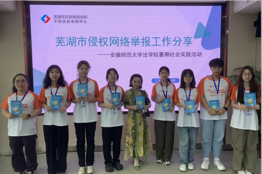 近期,安徽省蕪湖市互聯(lián)網(wǎng)違法和不良信息舉報(bào)中心迎來(lái)一群特殊的客人:來(lái)自安徽師范大學(xué)法學(xué)院的9名大二本科學(xué)生。為開(kāi)展2024年暑期社會(huì)實(shí)踐活動(dòng),安徽師范大學(xué)法學(xué)院“數(shù)治和音”信息暴力數(shù)據(jù)治理之道調(diào)研團(tuán)隊(duì)受邀來(lái)到蕪湖市互聯(lián)網(wǎng)違法和不良信息舉報(bào)中心開(kāi)展主題實(shí)踐教育活動(dòng)。