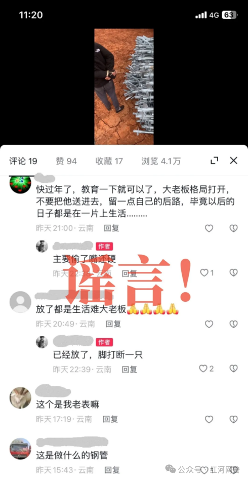 彌勒市公安局依法傳喚視頻發(fā)布者羅某某進(jìn)行調(diào)查。經(jīng)查,羅某某與朋友楊某某為制造噱頭、吸粉引流,擺拍了相關(guān)視頻,后由羅某某剪輯后發(fā)布到網(wǎng)絡(luò)平臺上。為了進(jìn)一步讓網(wǎng)民相信事件的真實性,羅某某回復(fù)網(wǎng)民評論稱“偷盜者已經(jīng)放了,腳打斷一只”。