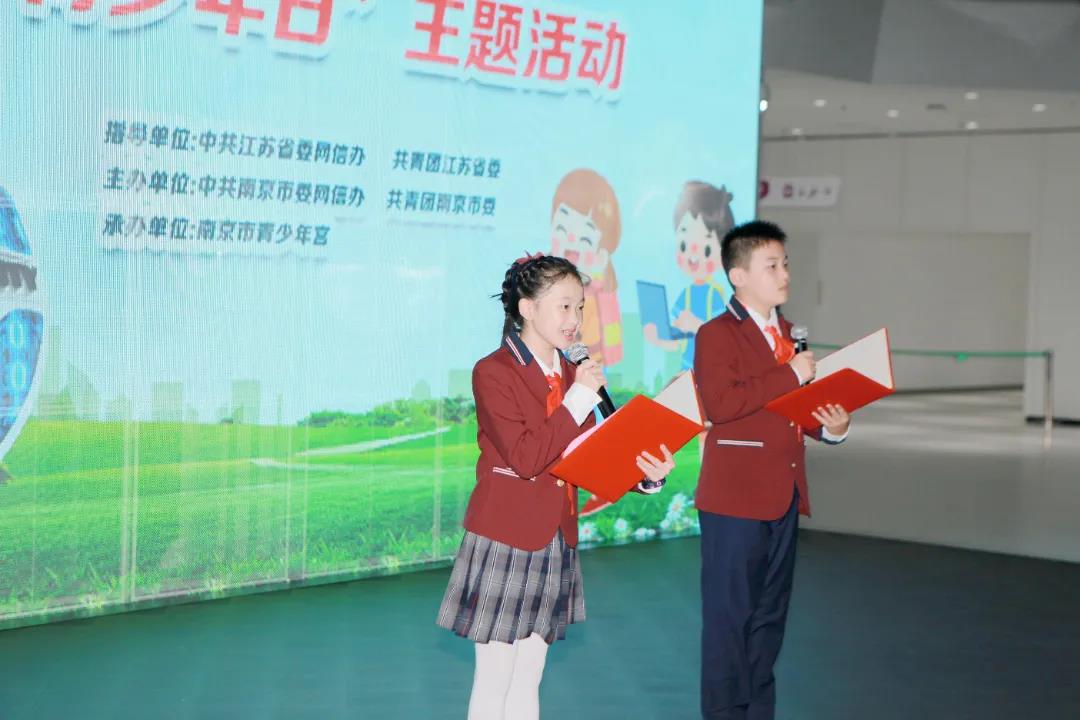 來自南京赤壁路小學(xué)的青少年代表柴懿峰、施婉悅走上臺(tái)宣讀網(wǎng)絡(luò)文明倡議書,一起倡議大家共同守護(hù)網(wǎng)絡(luò)安全,爭做網(wǎng)絡(luò)安全宣傳小使者。