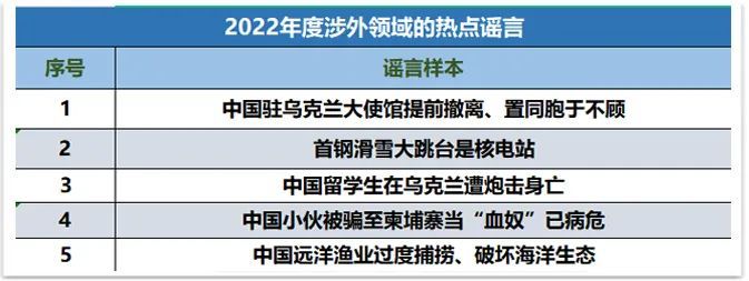 2022年2月,個別外媒發(fā)出“首鋼滑雪大跳臺是核電站”的歪曲報道,荒謬至極。烏克蘭危機爆發(fā)不久,網(wǎng)傳“中國駐烏克蘭大使館提前撤離、置同胞于不顧”,實際上當時中國駐烏克蘭大使仍在基輔,并通過包機、包車等方式組織中國公民有序撤離。這類失實消息嚴重損害我國際形象。還有如“中國遠洋漁業(yè)過度捕撈、破壞海洋生態(tài)”的傳言一度沸沸揚揚,但真實情況卻是中國人吃魚主要靠養(yǎng)殖而非捕撈。相關(guān)謠言嚴重背離事實。