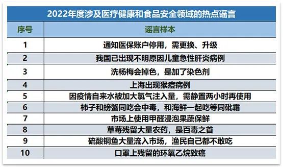 (圖表按照2022年中國互聯(lián)網(wǎng)聯(lián)合辟謠平臺發(fā)布的月度辟謠榜及行業(yè)辟謠榜發(fā)布時間正序排序,下同。)