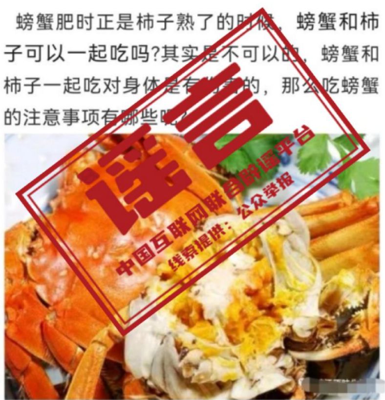 部分謠言披著“科普”的外衣,冠以“養(yǎng)生秘方”“防癌”“致癌”等噱頭,在網(wǎng)上反復傳播?!傲孔用廊菘沙櫩顾ァ薄案杉毎瘖y品可修復皮膚、抗衰老”等化妝用品類謠言以“黑科技”“醫(yī)療科學知識”為包裝,騙取不明真相的人消費;涉及食品的“偽科普”則添油加醋、夸大其詞,有時還伴有明顯的季節(jié)性特征。如秋季時值豐收時節(jié),有關(guān)“柿子和海鮮一起吃等同砒霜”“柿子空腹吃或與奶制品混吃都會得結(jié)石”等謠言就會出現(xiàn)。這些小道消息看似是對身體健康的善意提醒,實為“拋開劑量談毒性”的夸大其詞,混淆公眾視聽,妨害身體健康。