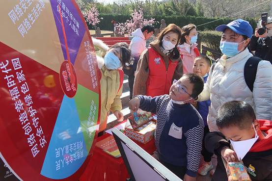 活動現(xiàn)場,記者看到小朋友們一個個爭先恐后地轉動趣味轉盤,大聲讀出轉盤上的網絡安全宣傳標語,并認真回答了卡片上對應的問題,開心地挑選起小禮物,有位家長表示,今天帶孩子過來游玩,既能參與互動游戲,還能學到網絡安全知識,非常有意義。舞臺中央,“唐僧師徒”的精彩表演吸引了眾多游客駐足觀看。