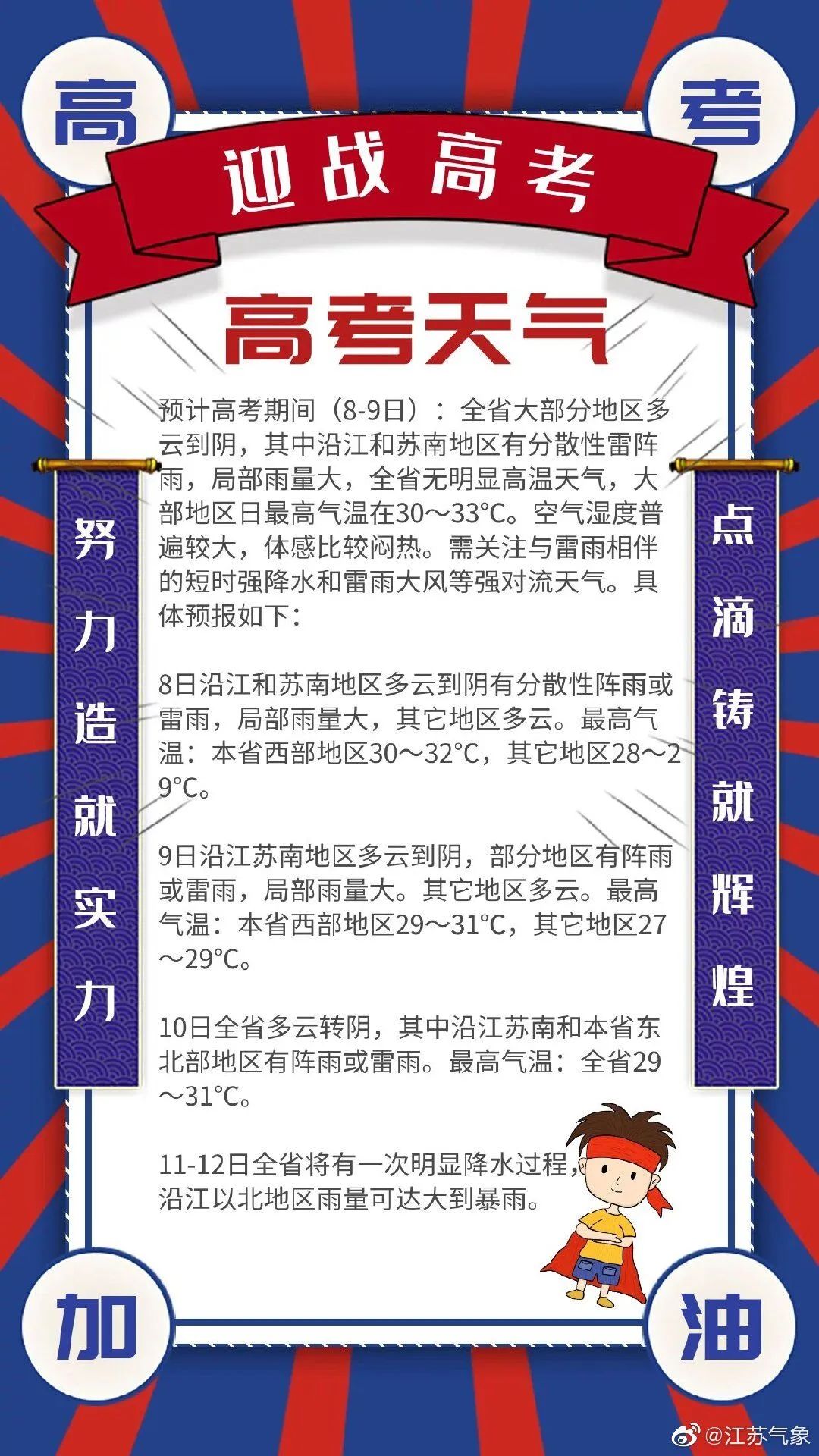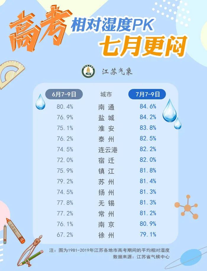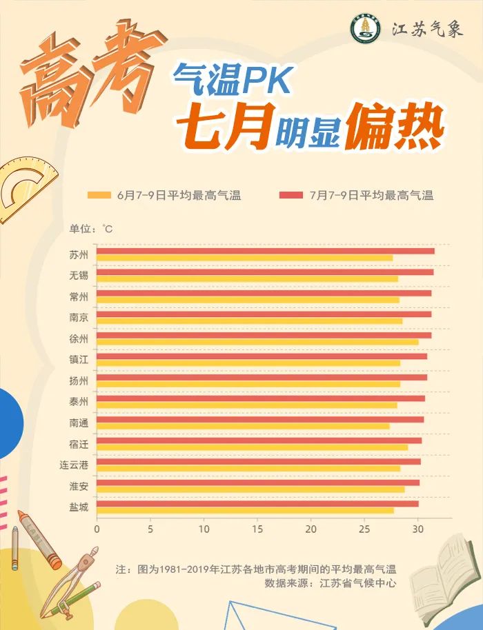 江蘇7月高考更熱、更悶、更多雨