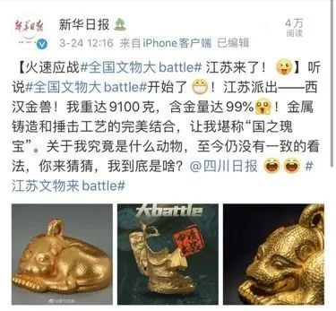 在見識到了各地的“神仙打架”后, @新華日報 也代表江蘇派出了——西漢金獸,參與首輪出戰(zhàn)!