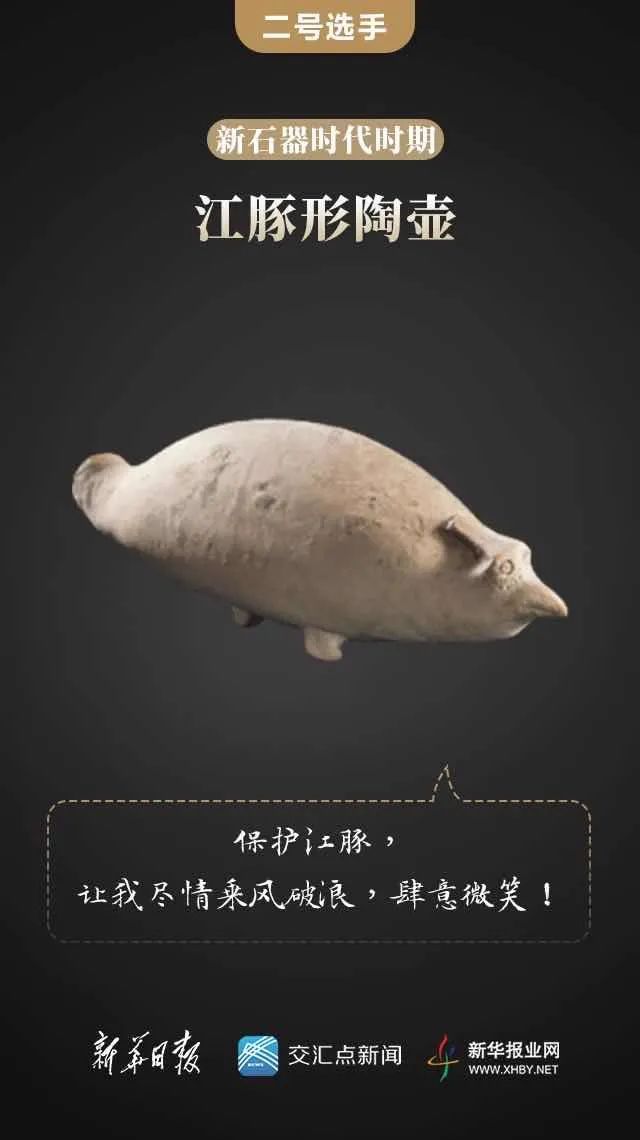 這件陶壺的整體造型生動逼真,體現(xiàn)了江豚在水中游動擺尾的姿態(tài)。陶壺的腹部有三只扁足,可以穩(wěn)穩(wěn)地托住飽滿的壺身,而注水口設在江豚微微上揚的尾部,使用起來相當便利。