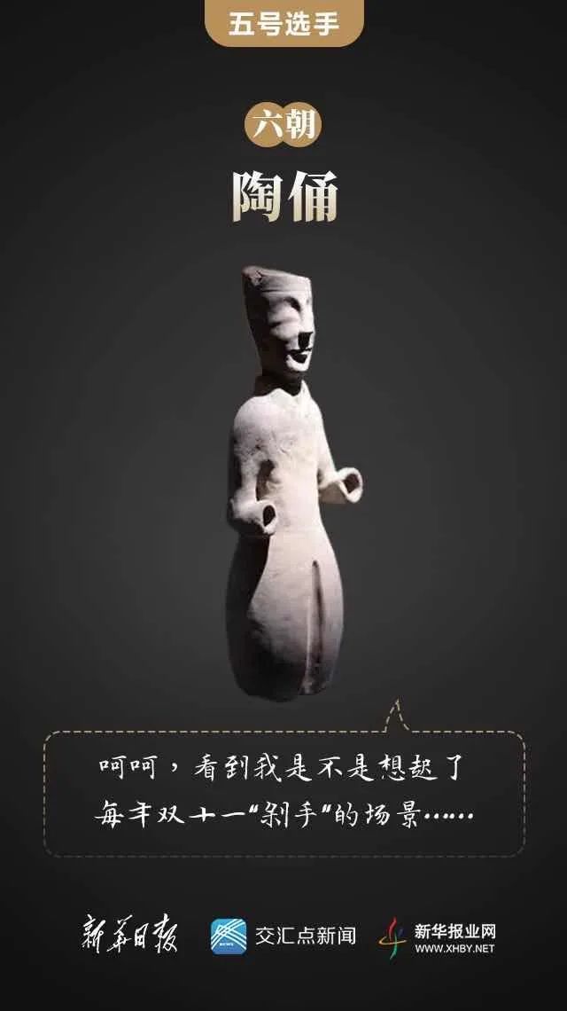 東晉時期,流行這樣一種陶俑制作方法:陶俑身體大部分用陶土燒制,只留下雙手末端兩個洞洞。工匠用木頭雕兩只手,放進兩個洞洞里安裝上。經(jīng)歷千年滄桑,木手和手中的道具早已經(jīng)朽爛光了,因此才給后人“剁手俑”的錯覺。