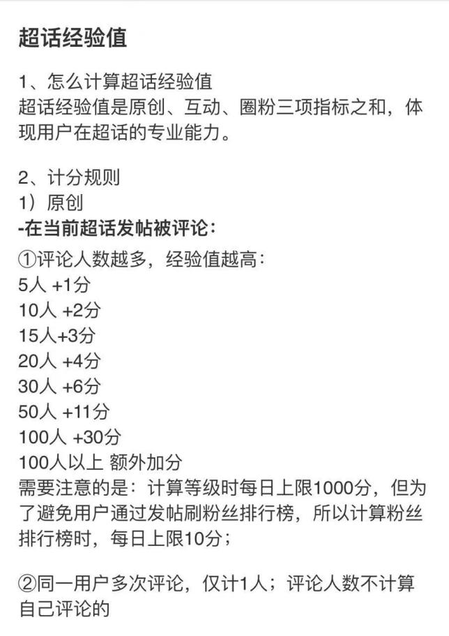 記者發(fā)現(xiàn),進(jìn)入明星超話后,貢獻(xiàn)積分入口已不存在,但在超話社區(qū)內(nèi),仍可看見明星超話排名。某明星粉絲表示:“既然還有排名那就意味著我們還需要繼續(xù)賺取積分提高超話排名。”而在明星超話內(nèi),不少粉絲站已經(jīng)總結(jié)出了超話的排名規(guī)則“影響超話排名要素包括超話簽到、互動(dòng)發(fā)帖數(shù)、閱讀量”。