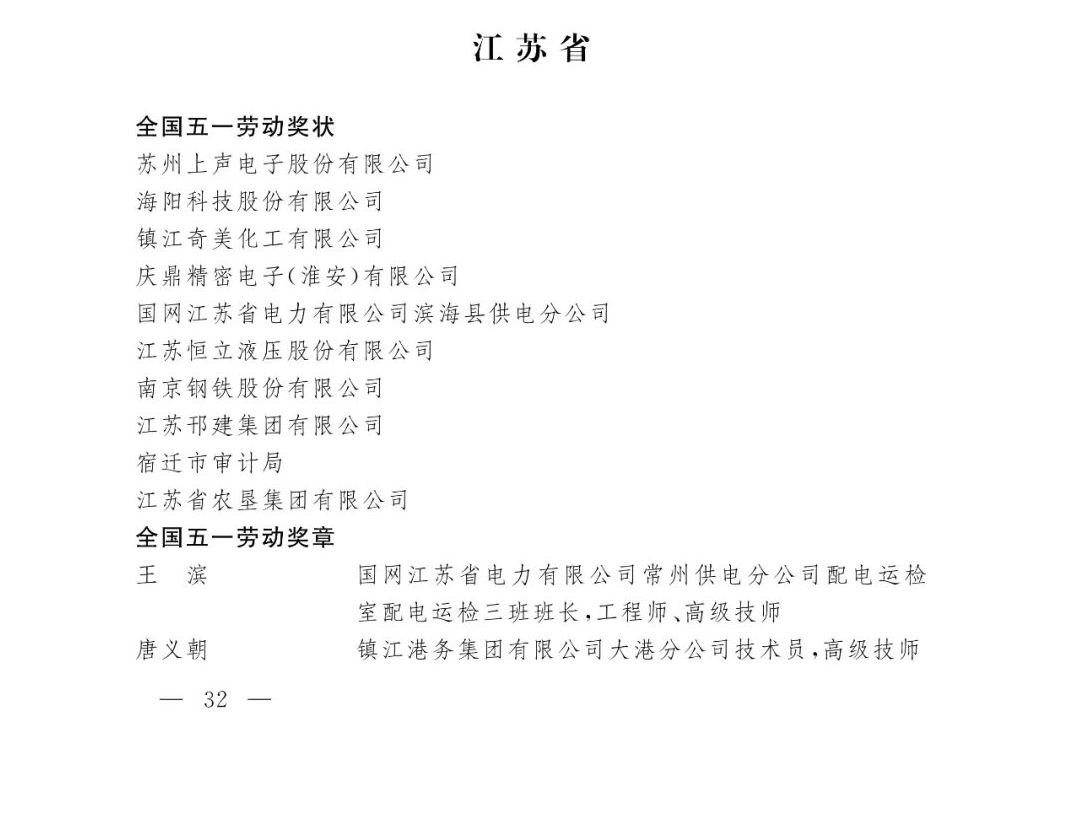 據(jù)《新華日?qǐng)?bào)》4月28日?qǐng)?bào)道:2022年江蘇全國(guó)和省五一勞動(dòng)獎(jiǎng)、工人先鋒號(hào)全部產(chǎn)生,全省共評(píng)選出全國(guó)五一勞動(dòng)獎(jiǎng)狀9個(gè)、全國(guó)五一勞動(dòng)獎(jiǎng)?wù)?4個(gè)(含單列表彰8個(gè))、全國(guó)工人先鋒號(hào)40個(gè),省五一勞動(dòng)獎(jiǎng)狀145個(gè)、省五一勞動(dòng)獎(jiǎng)?wù)?55個(gè)、省五一勞動(dòng)榮譽(yù)獎(jiǎng)?wù)?7個(gè)、省工人先鋒號(hào)548個(gè)。