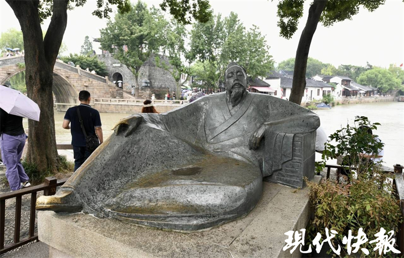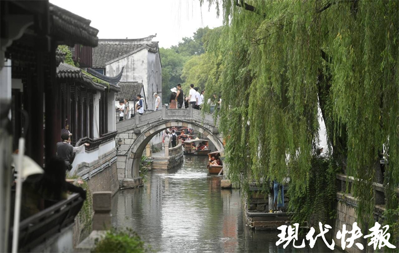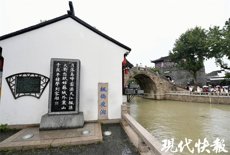 “姑蘇城外寒山寺,夜半鐘聲到客船”,一首《楓橋夜泊》,伴隨著寒山寺的鐘聲流傳了上千年。在蘇州楓橋夜泊景區(qū),采訪團成員們看到,游人如織,橫跨在運河上的楓橋,造型古樸簡單。