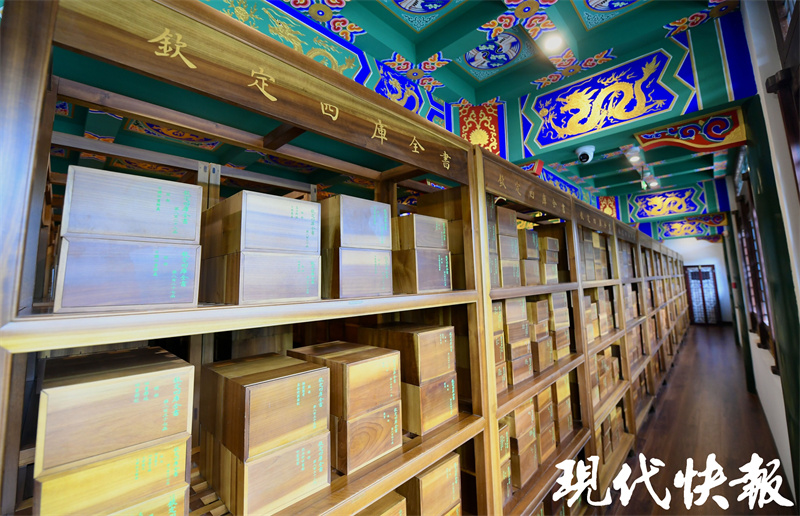 在揚州文匯閣,歷時12年復(fù)制完成的《四庫全書》在記者們的眼前鋪陳開來。據(jù)了解,文匯閣曾毀于戰(zhàn)火,今年4月復(fù)建完成并正式開放,《四庫全書》重新入藏,時隔169年書與閣再次相逢。