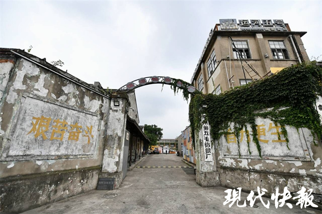 在常州運河五號創(chuàng)意街區(qū)可以看到,斑駁的老墻,大面積鋸齒形廠房,高聳的煙囪……走在街區(qū)中,當年工廠林立的繁華依稀可見。