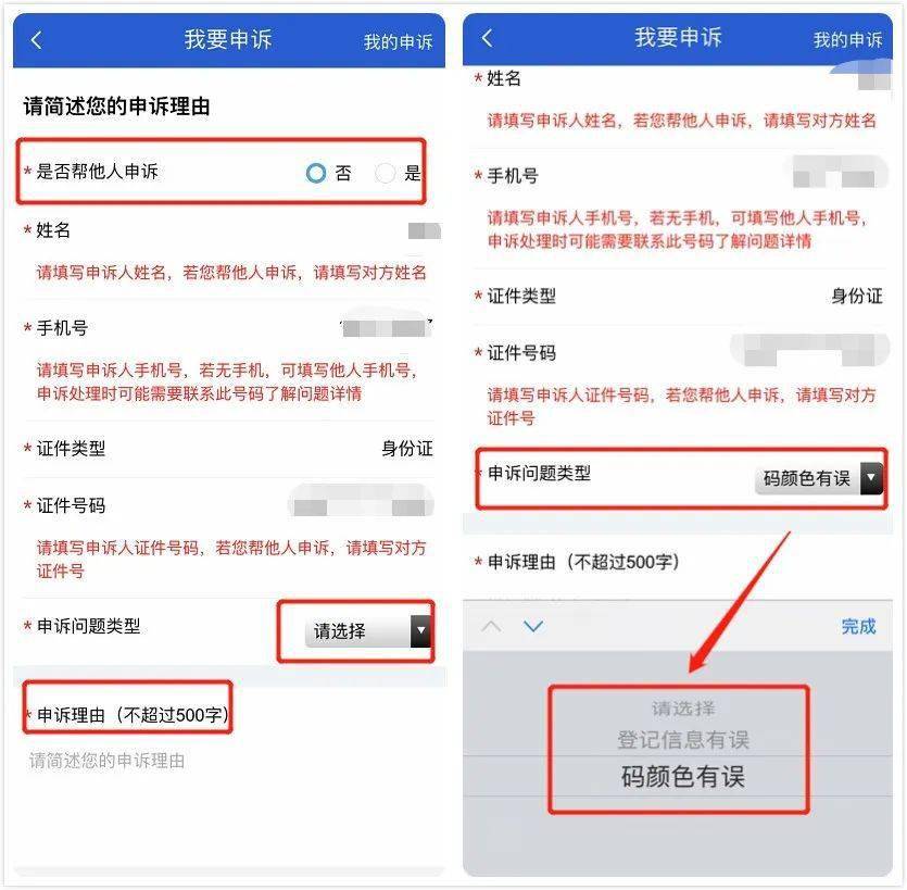 第二步:填寫相關(guān)申訴信息,可自己申訴,也可幫他人申訴。在選擇申訴問題類型,填寫申訴理由,并上傳憑證后,點(diǎn)擊提交。