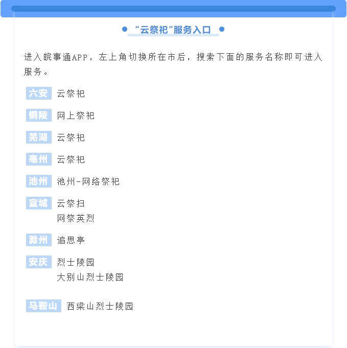 為避免因集中祭掃活動引發(fā)輸入性和聚集性疫情,安徽蕪湖、宣城、六安、銅陵、亳州等市在皖事通APP上線了“云祭祀”服務,方便群眾足不出戶寄托對逝去親人的哀思和悼念。