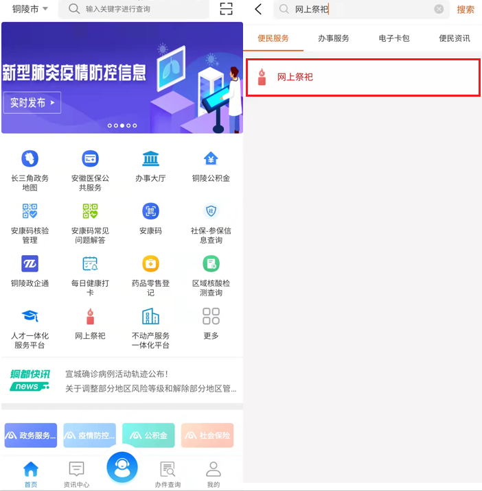 下面以銅陵市為例給大家介紹下如何進行“網上祭祀”