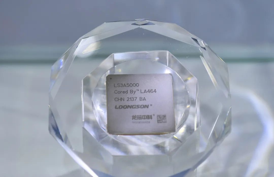 龍芯中科展臺展示的自主研發(fā)的CPU處理器。