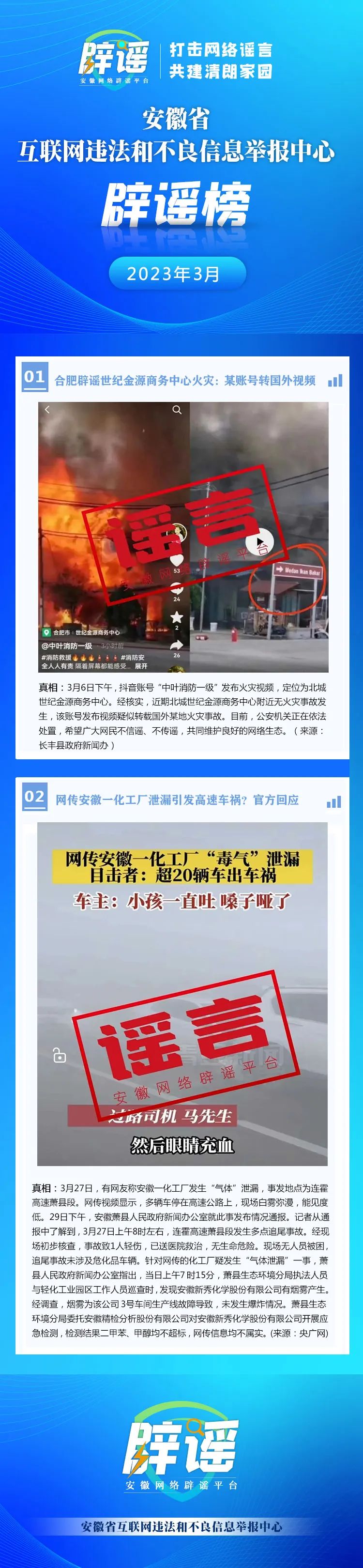 安徽網(wǎng)絡(luò)辟謠平臺(tái)2023年3月辟謠榜發(fā)布
