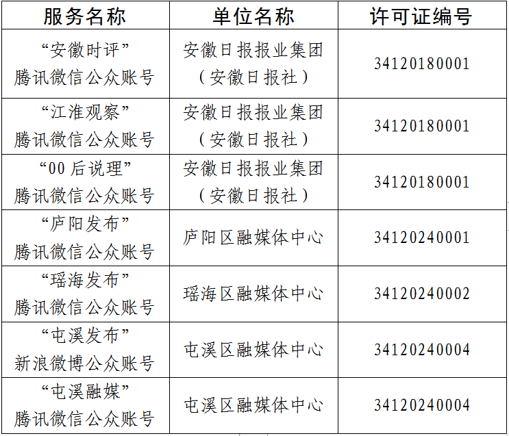 近日,安徽省互聯(lián)網(wǎng)信息辦公室按照《互聯(lián)網(wǎng)新聞信息服務(wù)管理規(guī)定》和國家網(wǎng)信辦有關(guān)工作要求,批準(zhǔn)“安徽時(shí)評(píng)”騰訊微信公眾賬號(hào)等13個(gè)項(xiàng)目從事互聯(lián)網(wǎng)新聞信息服務(wù),包括1個(gè)互聯(lián)網(wǎng)站、5個(gè)移動(dòng)應(yīng)用程序、1個(gè)新浪微博公眾賬號(hào)、6個(gè)騰訊微信公眾賬號(hào)。截至2024年1月12日,經(jīng)安徽省互聯(lián)網(wǎng)信息辦公室批準(zhǔn)的互聯(lián)網(wǎng)新聞信息服務(wù)單位總計(jì)113家,具體服務(wù)項(xiàng)目包括:互聯(lián)網(wǎng)站78個(gè),應(yīng)用程序77個(gè),公眾賬號(hào)266個(gè),共計(jì)421個(gè)服務(wù)項(xiàng)。