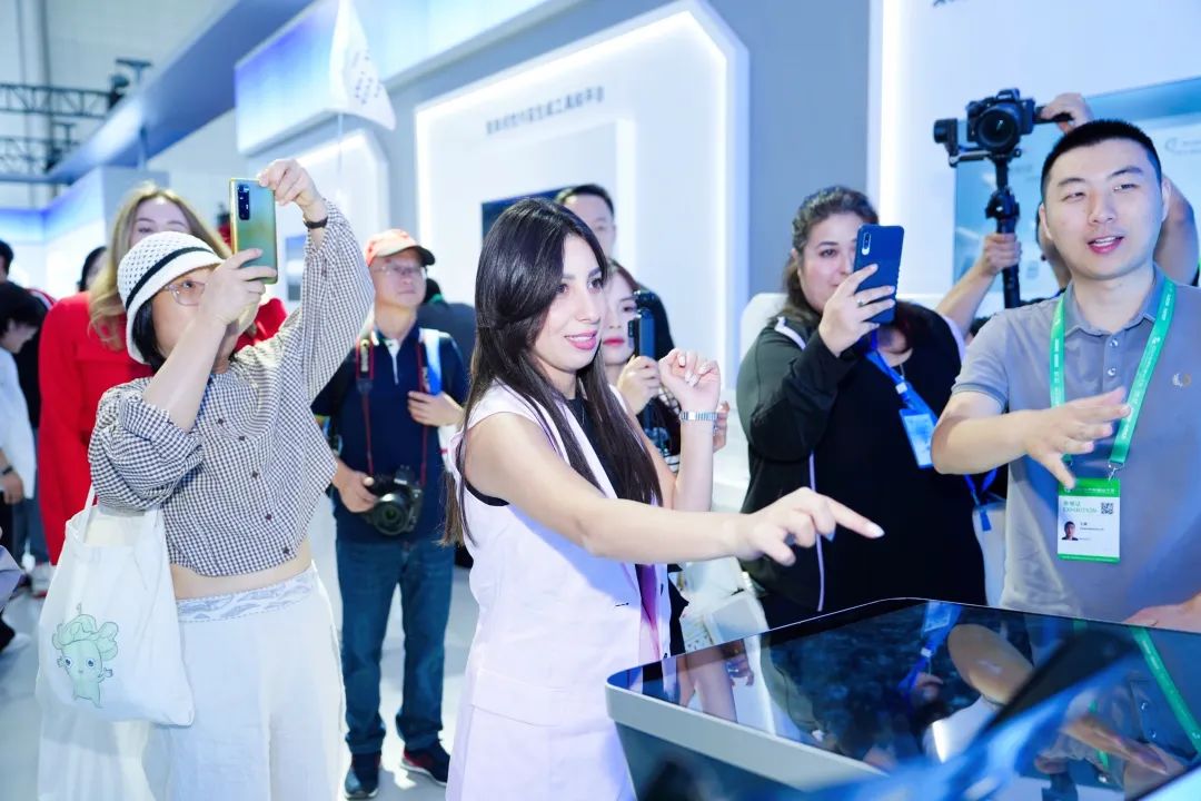 AIGC互動拍照、全息投影互動機器人、智慧農機、單軌列車、高仿生撲翼機器人……從前沿技術到創(chuàng)新生態(tài),“中國智造新場景”讓現(xiàn)場的外國網(wǎng)紅大飽眼福,網(wǎng)紅們不約而同地為“安徽制造”點贊。在空中成像互動展示屏前,俄羅斯網(wǎng)紅博主麗娜體驗了該設備搭載的可交互空中成像技術,點擊空中畫面,即可實現(xiàn)立體模型交互、空中題詞、多屏聯(lián)動等操控,過程中不存在任何接觸,這讓麗娜很是新奇,在她看來,相比傳統(tǒng)屏幕,這項可交互空中成像技術讓展示更具科技感,“可交互空中成像技術正在讓生活更美好!”