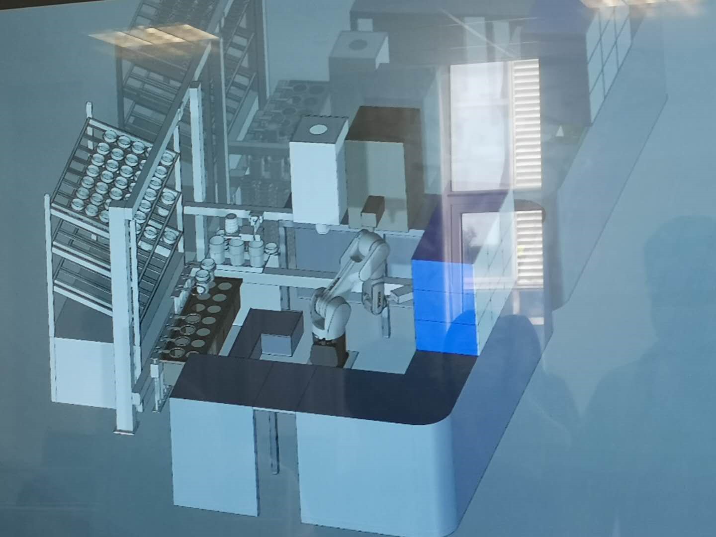 長江智造院擁有數(shù)字化設(shè)計與仿真平臺,能夠根據(jù)工廠需求定制,構(gòu)建虛擬化工廠。戴上VR眼鏡,可體驗在虛擬倉庫中行走的感覺。劉新還展示了麻辣燙機器人系統(tǒng)的仿真演示視頻。視頻中,機器人根據(jù)用戶下單,將提前配好的菜自動加工、上菜。通過虛擬運行,工廠可以預(yù)判操作流程的合理性,決定是否投入生產(chǎn)。