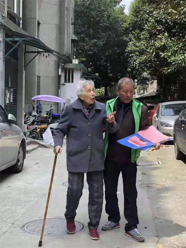 腿有殘疾的徐建國攙扶老人