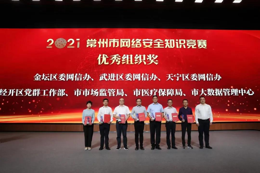 開幕式上,以視頻形式展播了常州市今年以來開展網(wǎng)絡(luò)安全工作取得的成效,舉辦了2021年常州市網(wǎng)絡(luò)安全知識競賽決賽,上線開通了2021常州市網(wǎng)絡(luò)安全宣傳周官方網(wǎng)站,發(fā)布并解讀了《2020年常州市網(wǎng)絡(luò)安全防護(hù)能力指數(shù)報(bào)告》,并為2021年省、市兩級網(wǎng)絡(luò)安全知識競賽中表現(xiàn)突出的單位和個(gè)人頒獎(jiǎng)。開幕式結(jié)束后,與會人員還參觀了2021年常州市網(wǎng)絡(luò)安全宣傳圖片展。