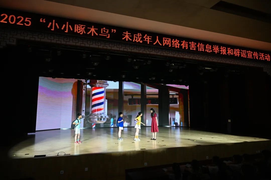 活動突破傳統(tǒng)宣教模式,采用由未成年人全程參與、自編自演的內(nèi)容創(chuàng)作機制,將舉報辟謠主題元素融入歌曲、演講、情景劇、脫口秀等特色環(huán)節(jié),成功打造寓教于樂的宣傳科普新范式。