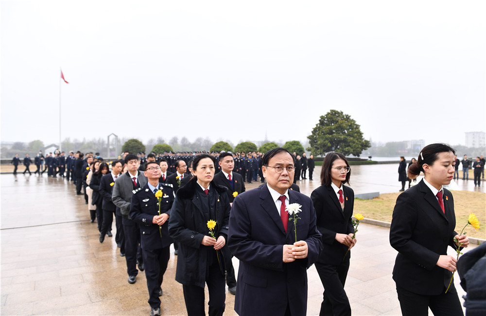 宣誓完畢后,伴隨著深情的《獻(xiàn)花曲》,大家手持菊花,走上臺(tái)階,進(jìn)入周恩來(lái)紀(jì)念館正廳,向周總理塑像獻(xiàn)花。