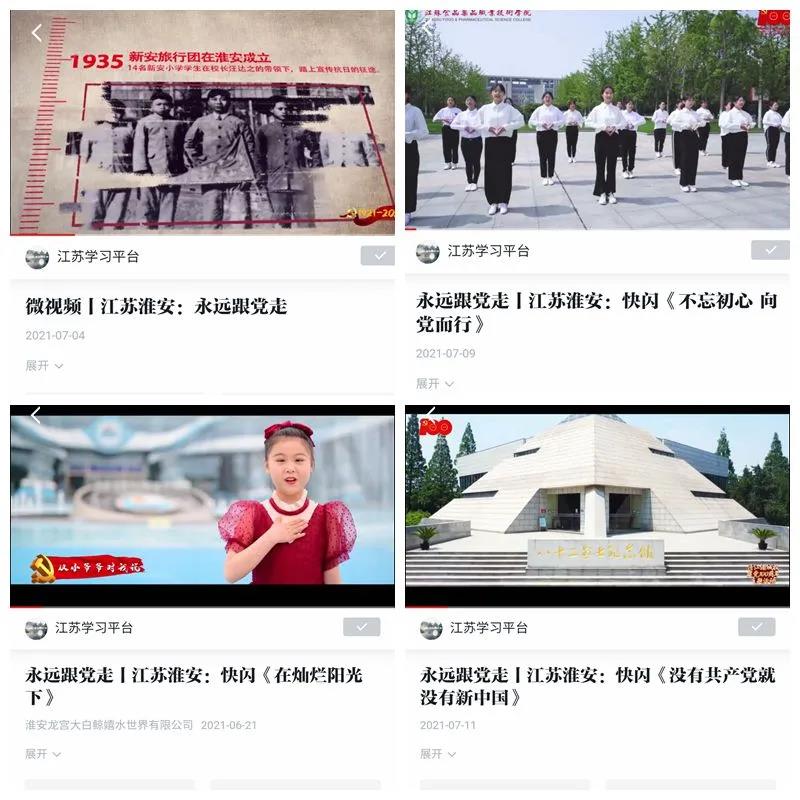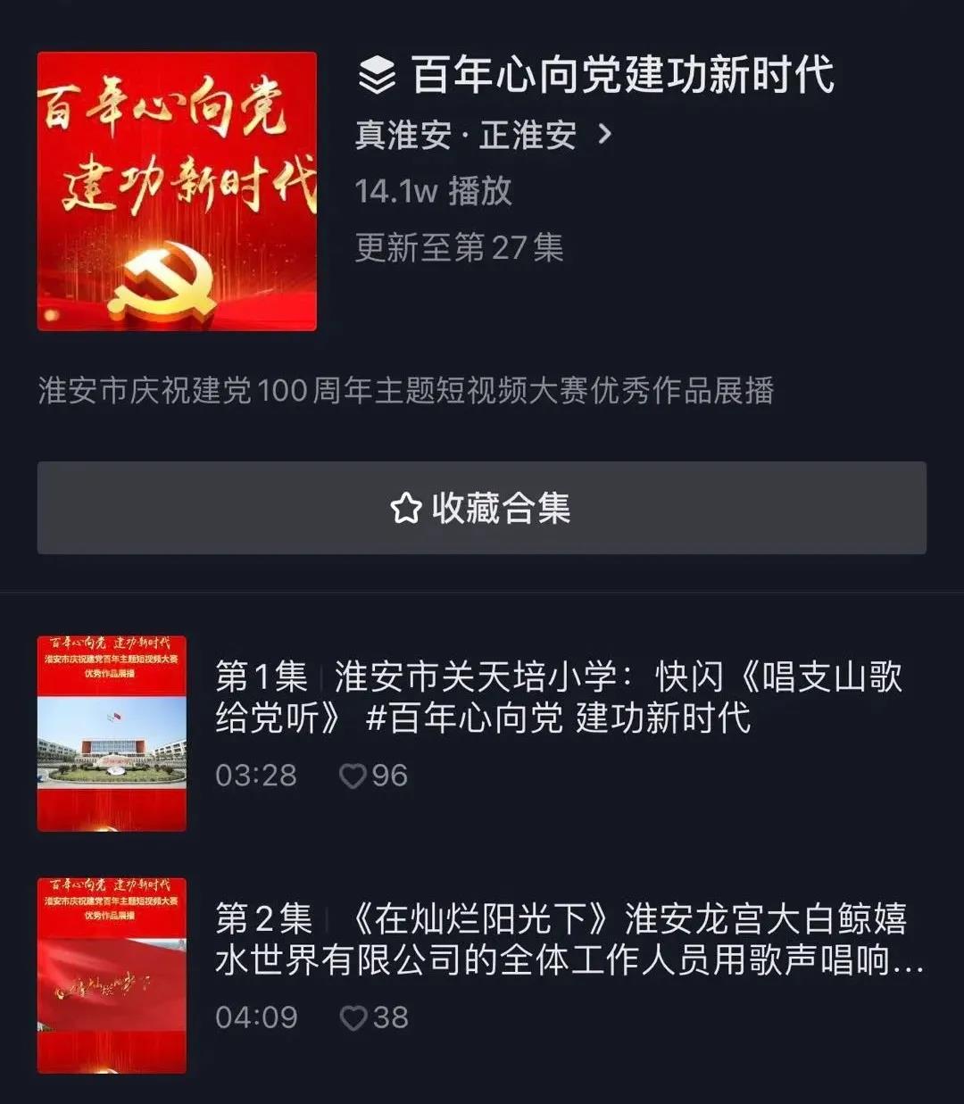 作品征集完成后,淮安市廣播電視臺(集團)第一時間在“無線淮安”移動客戶端開設(shè)“淮安市慶祝建黨100周年主題短視頻大賽優(yōu)秀作品展播區(qū)”。截至7月15日,已通過“真淮安·正淮安”抖音政務(wù)號展播作品30件;“無線淮安”微信公眾號展播作品11件;“無線淮安”移動客戶端展播作品40件。