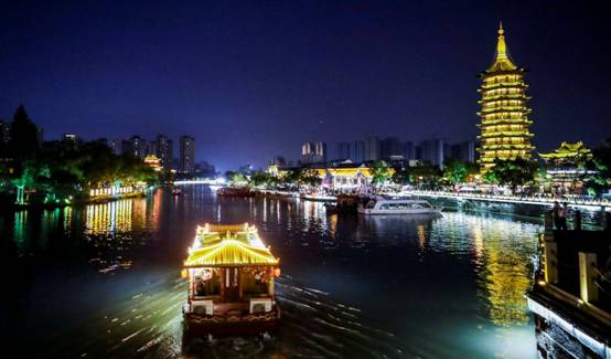 入夜后的夏日暖風(fēng)打在身上已沒有白天的燥熱,淮安清江浦景區(qū)里運(yùn)河的兩岸流光溢彩,游人如織。這一頭,一場場令人叫絕的歌唱表演吸引了過往散步的市民和游客,里三層外三層將戲臺(tái)圍個(gè)水泄不通;那一邊,名勝古剎的倒影隨著運(yùn)河的水波變化莫測,三五成群的游客正拿著手機(jī)在這迷人夜色中留下美好回憶。8月14日,“以河為媒——沿著大運(yùn)河看中國”媒體采訪團(tuán)來到淮安,感受運(yùn)河之都在時(shí)代變遷中散發(fā)的無窮魅力。
