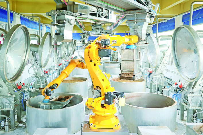 近年來,我市立足市場需求,夯實工業(yè)基礎,持續(xù)開展“5G+工業(yè)互聯(lián)網(wǎng)”數(shù)字化車間、智能生產(chǎn)線、智慧工廠建設,推動制造業(yè)數(shù)字化、智能化,實現(xiàn)高質(zhì)量發(fā)展。圖為近日,在江蘇今世緣酒業(yè)股份有限公司智能化釀酒車間,機械手臂在精準投料。