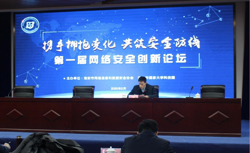 2025年2月27日,淮安市網(wǎng)絡(luò)信息和數(shù)據(jù)安全協(xié)會會同淮安市國家大學(xué)科技園在淮安智慧谷會議中心舉辦第一屆網(wǎng)絡(luò)安全創(chuàng)新論壇。協(xié)會會長、淮安易云科技有限公司董事長朱峰平,協(xié)會駐會副會長、淮陰工學(xué)院原副校長陸為群,協(xié)會秘書長、市委網(wǎng)信辦網(wǎng)絡(luò)安全應(yīng)急指揮中心主任孫權(quán),協(xié)會黨建指導(dǎo)員、市委網(wǎng)信辦網(wǎng)安處副處長何權(quán),淮安市國家大學(xué)科技園總經(jīng)理劉剛等領(lǐng)導(dǎo)和嘉賓出席論壇。論壇由協(xié)會秘書長孫權(quán)主持。