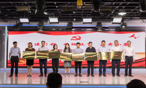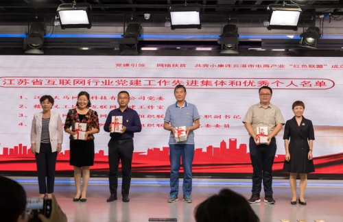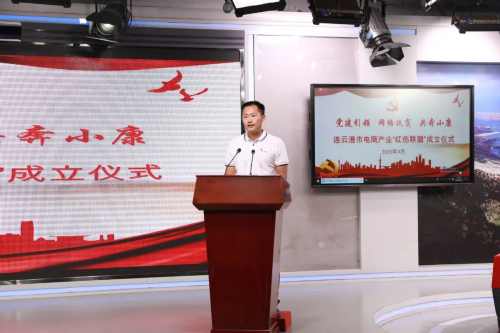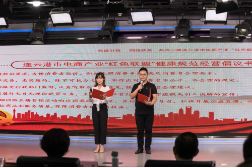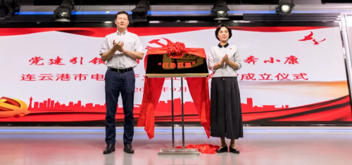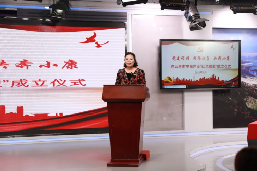 ▲連云港市委常委、宣傳部長滕雯,市委宣傳部副部長、市委網(wǎng)信辦主任李武為電商產(chǎn)業(yè)“紅色聯(lián)盟”成立揭牌