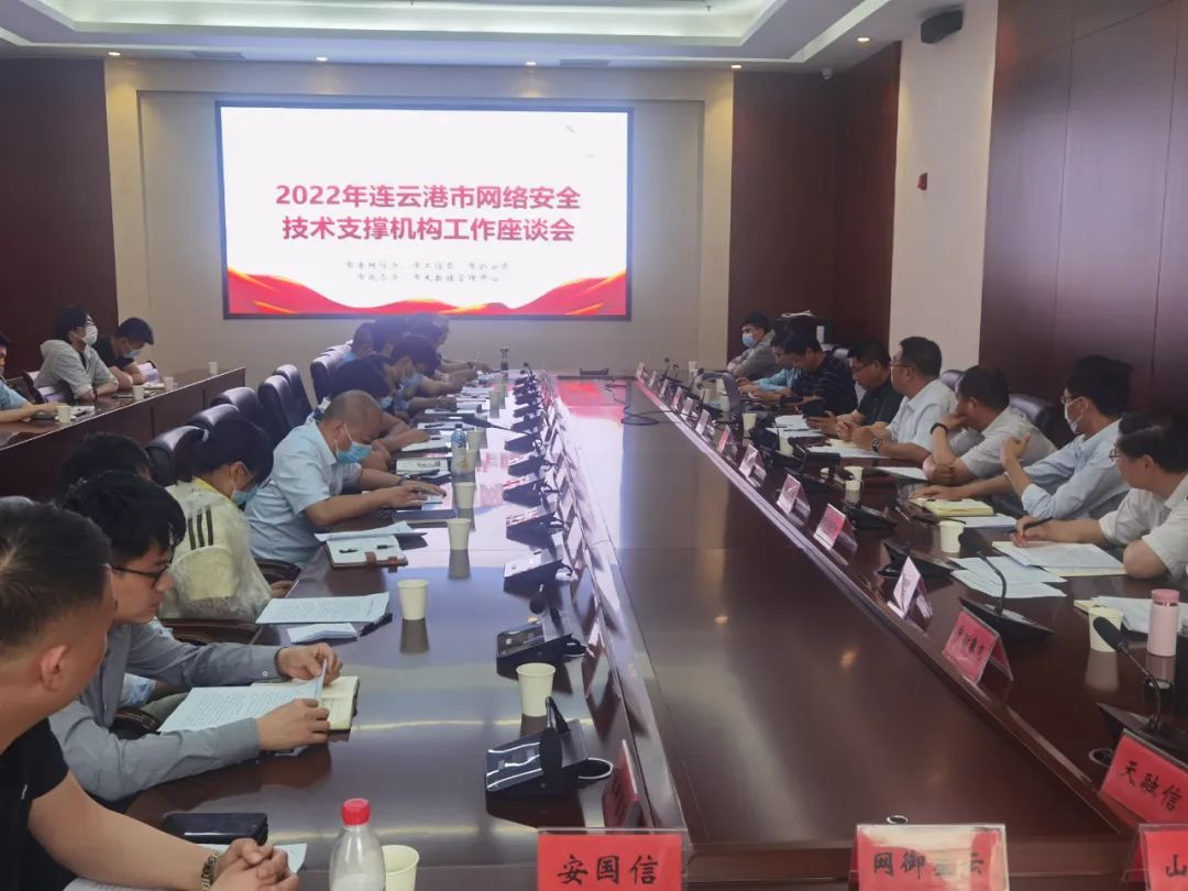 為推進連云港市網(wǎng)絡安全技術(shù)支撐體系建設,部署開展“網(wǎng)安2022”專項行動系列活動,切實做好黨的二十大網(wǎng)絡安全保障工作。5月31日,市委網(wǎng)信辦聯(lián)合市工信局、市公安局、市政務辦、市大數(shù)據(jù)管理中心等部門召開2022年連云港市網(wǎng)絡安全技術(shù)支撐機構(gòu)工作座談會,22家支撐單位參加會議。