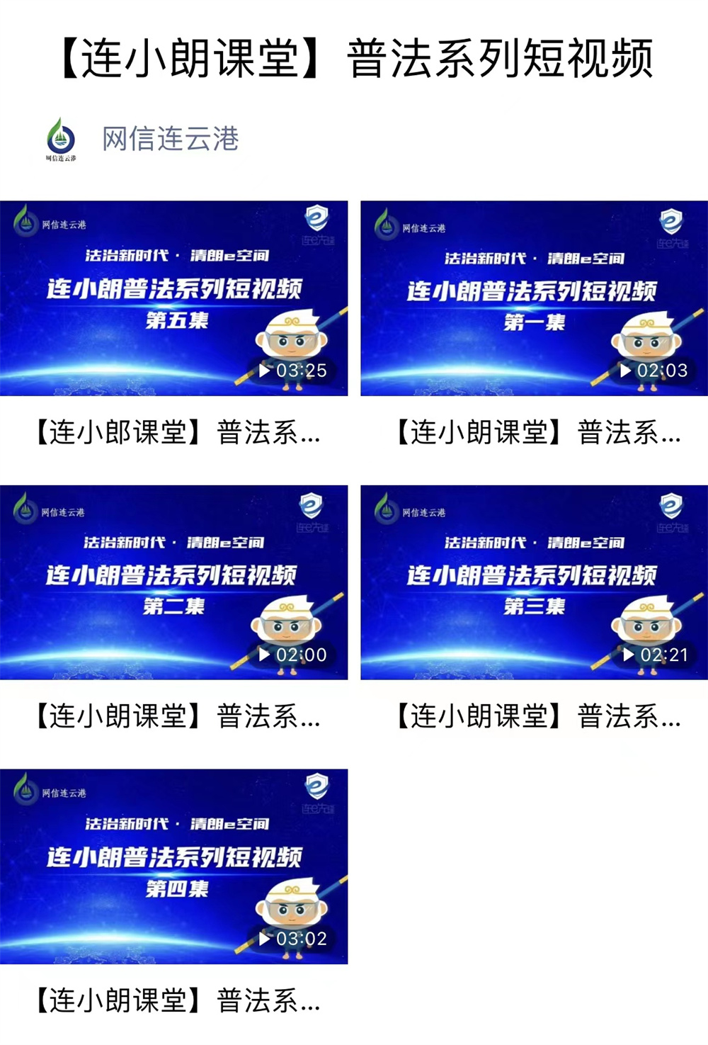 制作并推出《連小朗普法系列短視頻》?!哆B小朗普法系列短視頻》目前現(xiàn)已出品五集,重點(diǎn)圍繞網(wǎng)民朋友關(guān)注的電信詐騙、網(wǎng)絡(luò)謠言、個(gè)人信息安全、未成年人保護(hù)等民生熱點(diǎn)話題,打造連云港網(wǎng)絡(luò)普法傳播矩陣,普及網(wǎng)絡(luò)安全等法律法規(guī)、預(yù)防網(wǎng)絡(luò)電信詐騙、辨別網(wǎng)絡(luò)虛假信息、抵制網(wǎng)絡(luò)謠言等,提醒廣大網(wǎng)民朋友注意上網(wǎng)安全和文明上網(wǎng)?!哆B小朗普法系列短視頻》已在連云港市610所中小學(xué)展播,傳播覆蓋人群達(dá)150萬+,榮獲“江蘇省青年安全創(chuàng)意微視頻和融媒體作品征集大賽”三等獎(jiǎng)、優(yōu)秀組織獎(jiǎng)。