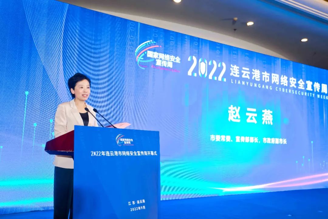 9月6日下午,2022年連云港市網(wǎng)絡安全宣傳周開幕。市委常委、宣傳部部長,市政府副市長、市委網(wǎng)信委副主任趙云燕參加開幕式并講話。市委宣傳部副部長、市委網(wǎng)信辦主任李武、各主題日活動牽頭部門及市人社局、海州區(qū)委網(wǎng)信委分管領導,各縣區(qū)(功能板塊)網(wǎng)信部門負責人等參加了開幕式。
