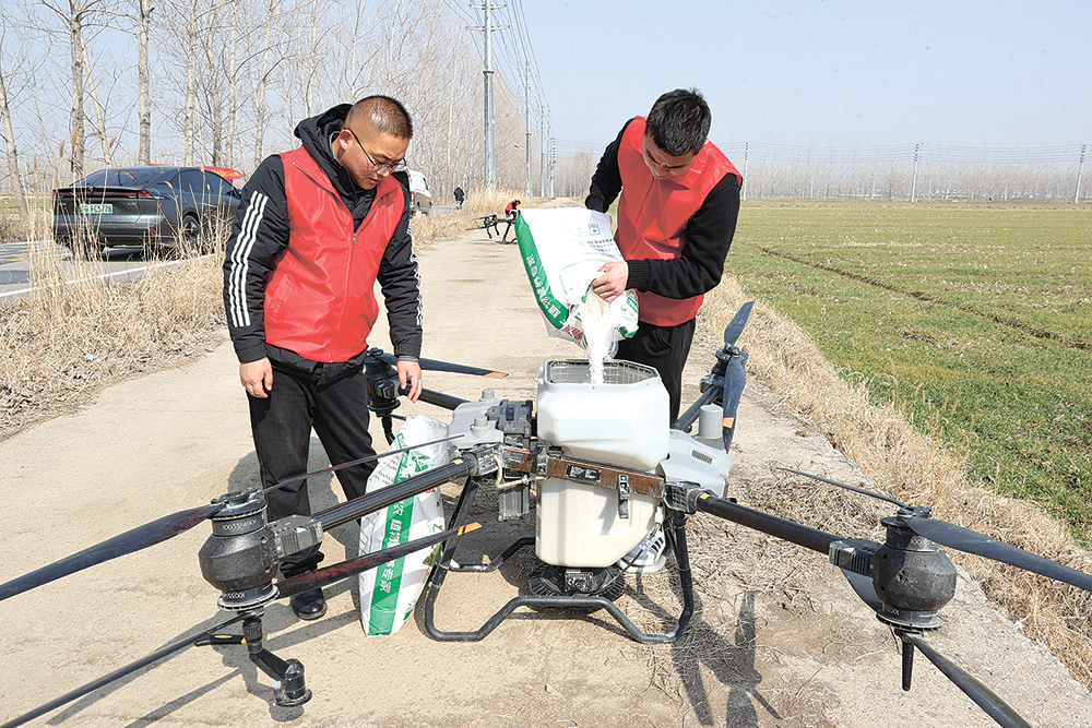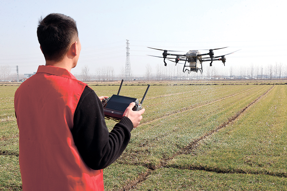 “這款無人植保機操作非常簡單,調(diào)配好肥料灌入箱中,通過設定好的程序,就可完成路線規(guī)劃、一鍵作業(yè)、自動返航等操作,播撒均勻流暢。”在江蘇省贛榆區(qū)城頭鎮(zhèn),昭金農(nóng)作物種植專業(yè)合作社負責人胡團,正在對小麥弱苗田塊進行施肥。眼下正是春耕春管關(guān)鍵時期,這些高科技農(nóng)機裝備駐扎田間,讓“會種地”變身“慧種地”,不僅讓種地變得輕松,也讓增產(chǎn)變得有保障。