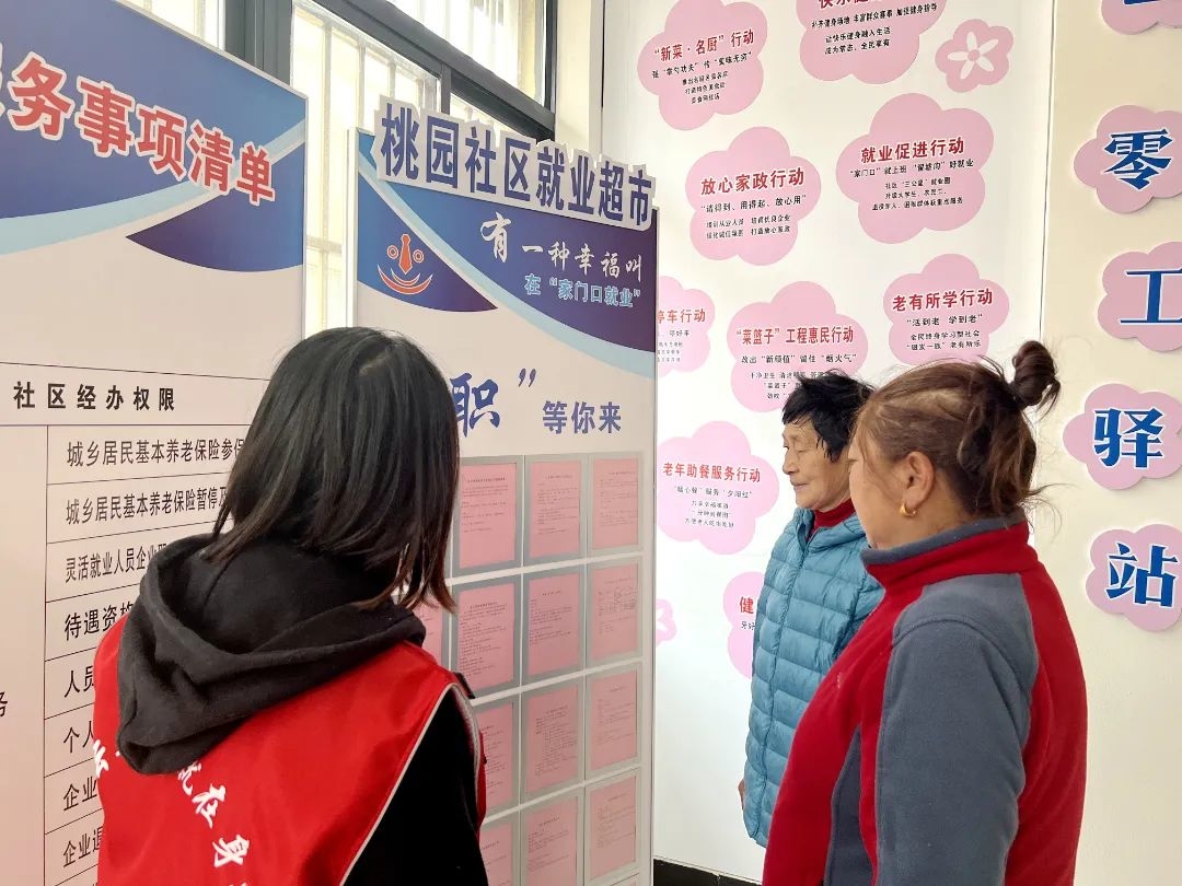 走進(jìn)桃園社區(qū)服務(wù)站,站長與一名專職社工正對照檔案卡,交流幫扶方案。站內(nèi)4個窗口還設(shè)置專兼職AB崗,可提供待遇資格認(rèn)證、就業(yè)困難人員認(rèn)定、就業(yè)創(chuàng)業(yè)政策咨詢等17項(xiàng)服務(wù)。作為全省首批一體化系統(tǒng)全流程上線的2臺自助一體機(jī),可為轄區(qū)1070余戶居民提供查詢、辦理、打印等多項(xiàng)網(wǎng)上業(yè)務(wù)。同時桃園社區(qū)大力推進(jìn)人社服務(wù)“網(wǎng)上辦”。啟用“網(wǎng)上辦事大廳”“社保e繳費(fèi)”“微信公眾號”“手機(jī)APP”等新媒介,居民動動鼠標(biāo),就可辦理參保登記等10余種業(yè)務(wù),實(shí)現(xiàn)“數(shù)據(jù)多跑腿,群眾少跑路”。智能化的提升體現(xiàn)社區(qū)治理的不斷精細(xì)化。年初登記失業(yè)人員229人,其中就業(yè)困難人員15人。對此,社區(qū)逐一建檔立卡,動態(tài)記錄其家庭情況、失業(yè)原因、擇業(yè)愿望等信息,制定“一對一”援助方案。截至目前,15名就業(yè)困難人員已全部再就業(yè),82人已辦理社保補(bǔ)貼,有勞動能力和就業(yè)愿望的下崗失業(yè)人員就業(yè)率達(dá)到了100%,消除了長期失業(yè)現(xiàn)象及零就業(yè)家庭。