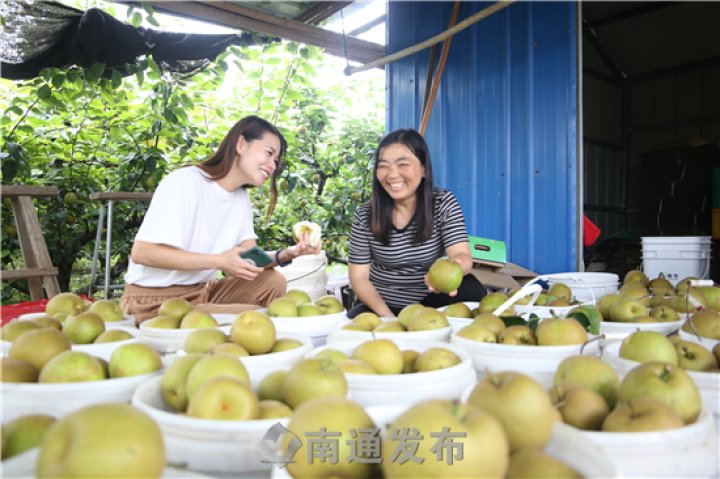 8月6日早上5點(diǎn),天剛蒙蒙亮,南通外向型農(nóng)業(yè)綜合開發(fā)區(qū)東海社區(qū)的千畝優(yōu)質(zhì)梨基地里,梨農(nóng)們有條不紊地忙著采摘、分揀、裝箱……8點(diǎn)左右,中國郵政的貨車如約而至,載上上百箱封裝好的新鮮果梨送往各經(jīng)銷點(diǎn)?!敖衲暧晁?,梨甜度有所下降,不過整體品質(zhì)不錯(cuò),從銷量來看,全年銷售額應(yīng)該不低于去年800萬元的水平?!被睾献魃缋硎麻L繆純芳笑著說。
