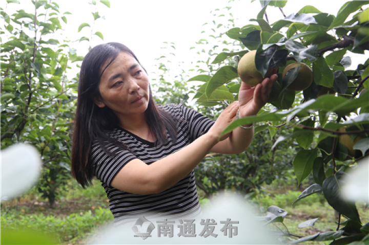果農(nóng)有顧慮,繆純芳一方面邀請(qǐng)專家來“講學(xué)”,另一方面組織果農(nóng)代表外出“游學(xué)”,雙管齊下,終于得到了部分果農(nóng)的認(rèn)可。2013年,如東金沙灘果蔬專業(yè)合作社成立,20多個(gè)果農(nóng)入社,同意在原先的梨樹上通過高枝嫁接的方式更換新品種,打開了改良品種的良好開端。