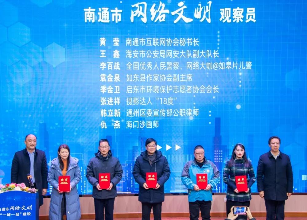 啟動儀式上,中共南通市委網(wǎng)信辦、南通市文明辦共同發(fā)布了南通市網(wǎng)絡(luò)文明“一城一品”建設(shè)七大品牌,并向市首批網(wǎng)絡(luò)文明觀察員發(fā)放聘書。