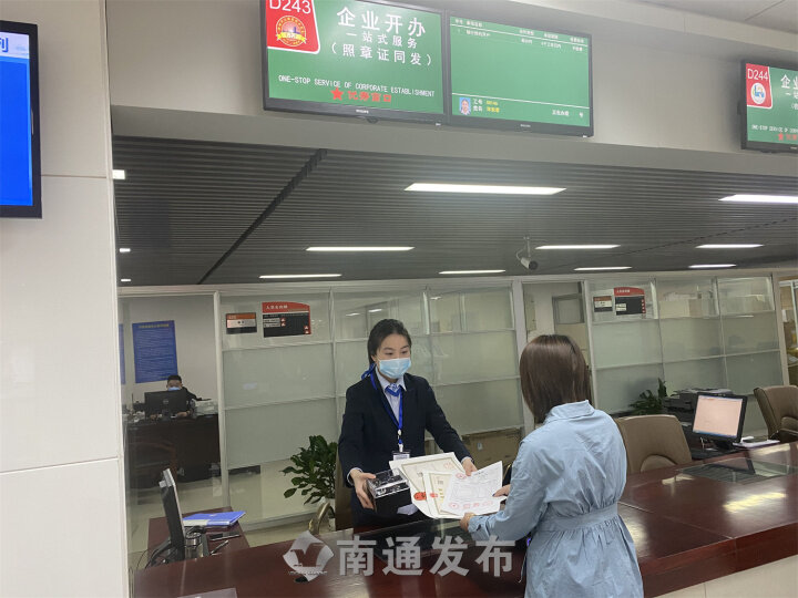 前幾天,遠(yuǎn)在江西的徐國慶,拿到了開設(shè)在南通公司的營業(yè)執(zhí)照,“我只準(zhǔn)備了一張身份證,在網(wǎng)上就完成了企業(yè)新設(shè),順便完成了公司社保、稅務(wù)、公積金以及銀行開戶,還免費(fèi)得到了一套企業(yè)公章?!?/p>
