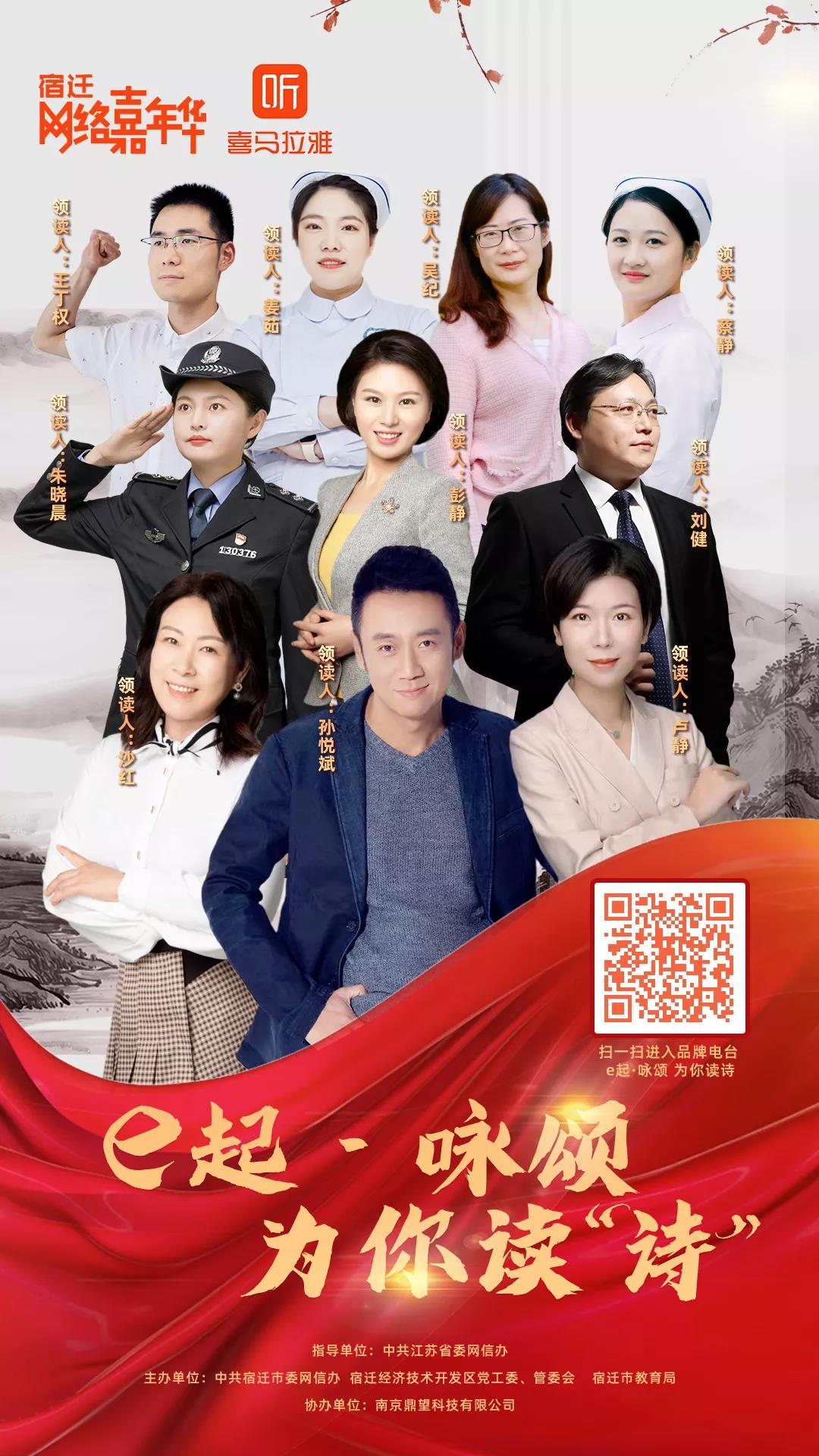 參與“e起·詠頌 為你讀詩”云征集活動的有行業(yè)配音大咖孫悅斌,宿遷地區(qū)第一位中國共產(chǎn)黨女黨員蘇同仁的外孫女沙紅,宿遷市看守所四級警長、第十六屆江蘇青年五四獎?wù)芦@得者朱曉晨,宿遷市“抗疫天使之星”蔡靜,宿遷市朗誦學(xué)會創(chuàng)辦人盧靜,宿遷市高中語文教研員吳紀,宿遷市互聯(lián)網(wǎng)行業(yè)黨委委員、中科君達董事長劉健等社會各界知名人士。還有聲線稚嫩的小學(xué)生、深沉渾厚的離退休老干部,也有激情澎湃、聲情并茂的各行各業(yè)黨員代表,敬崗愛業(yè)的基層一線的普通市民……整個城市的詩意滿滿!