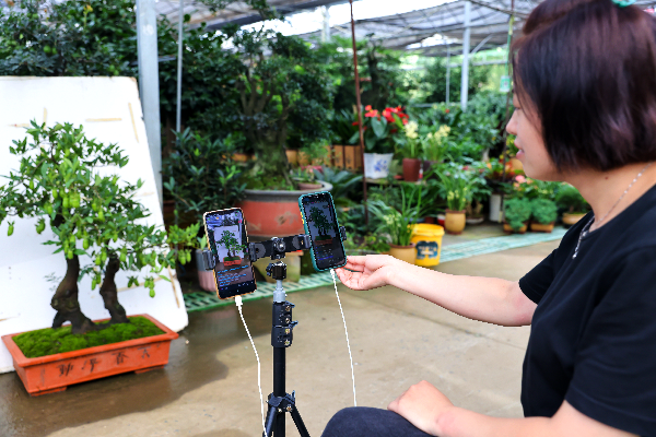 “現(xiàn)在是‘一部手機走天下’,通過一些直播平臺直接對接客戶,向他們展示花木產(chǎn)品、介紹養(yǎng)護特點,提高了消費者對花木產(chǎn)品的認知度?!便痍柨h廟頭鎮(zhèn)65歲花木種植戶張遷,通過網(wǎng)絡(luò)直播銷售花木,年銷售額超百萬元。“根據(jù)花木品相現(xiàn)場報價并由客戶自主下單,省去中間商差價,提升客戶購買欲,也讓買賣雙方拉近了距離、增加了信任?!睆堖w坦言,直播給他帶來了更多的客戶群。