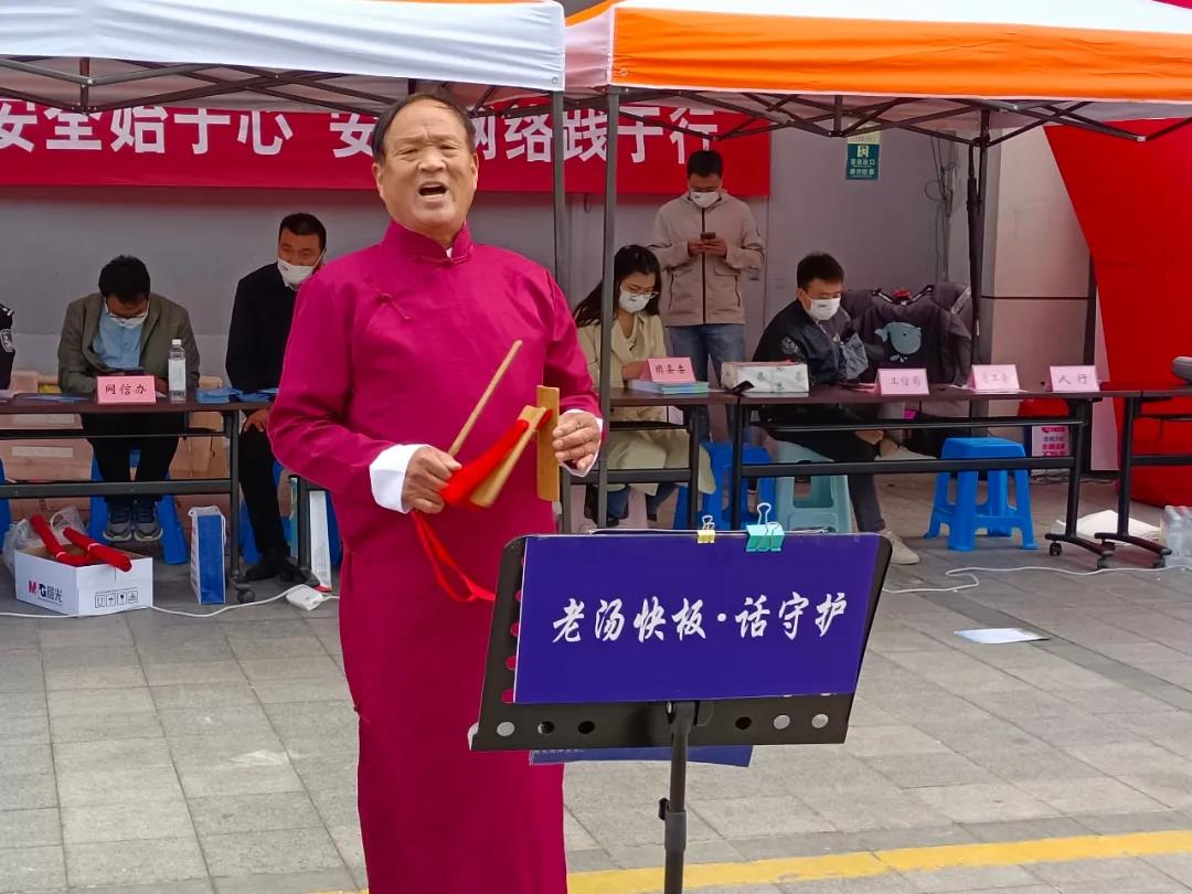 活動現(xiàn)場,群眾代表“快板大爺”湯成萬還以快板形式,自編自演一段網(wǎng)絡安全反詐知識宣傳快板,簡單易懂、朗朗上口,受到現(xiàn)場圍觀群眾的熱烈歡呼,每當說到高潮處,都會引來一聲聲叫好和一陣陣熱烈的掌聲。