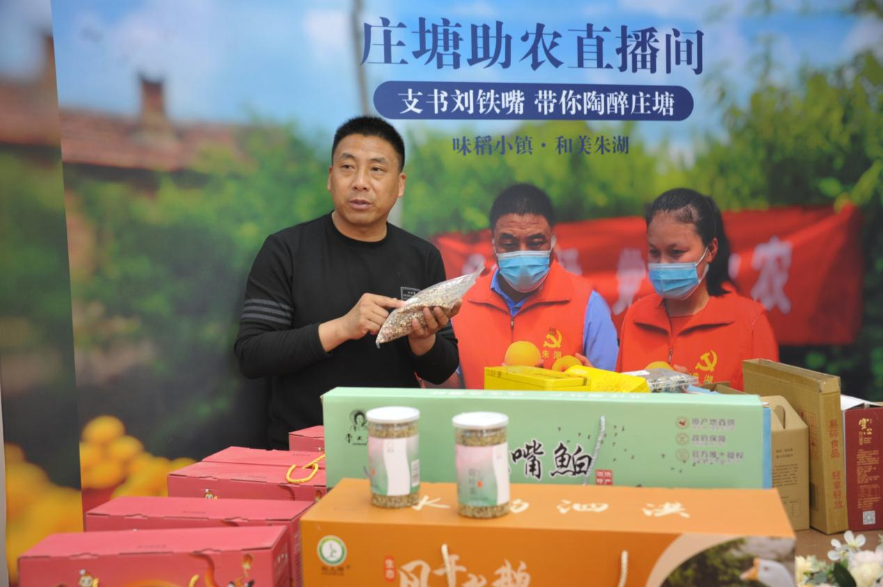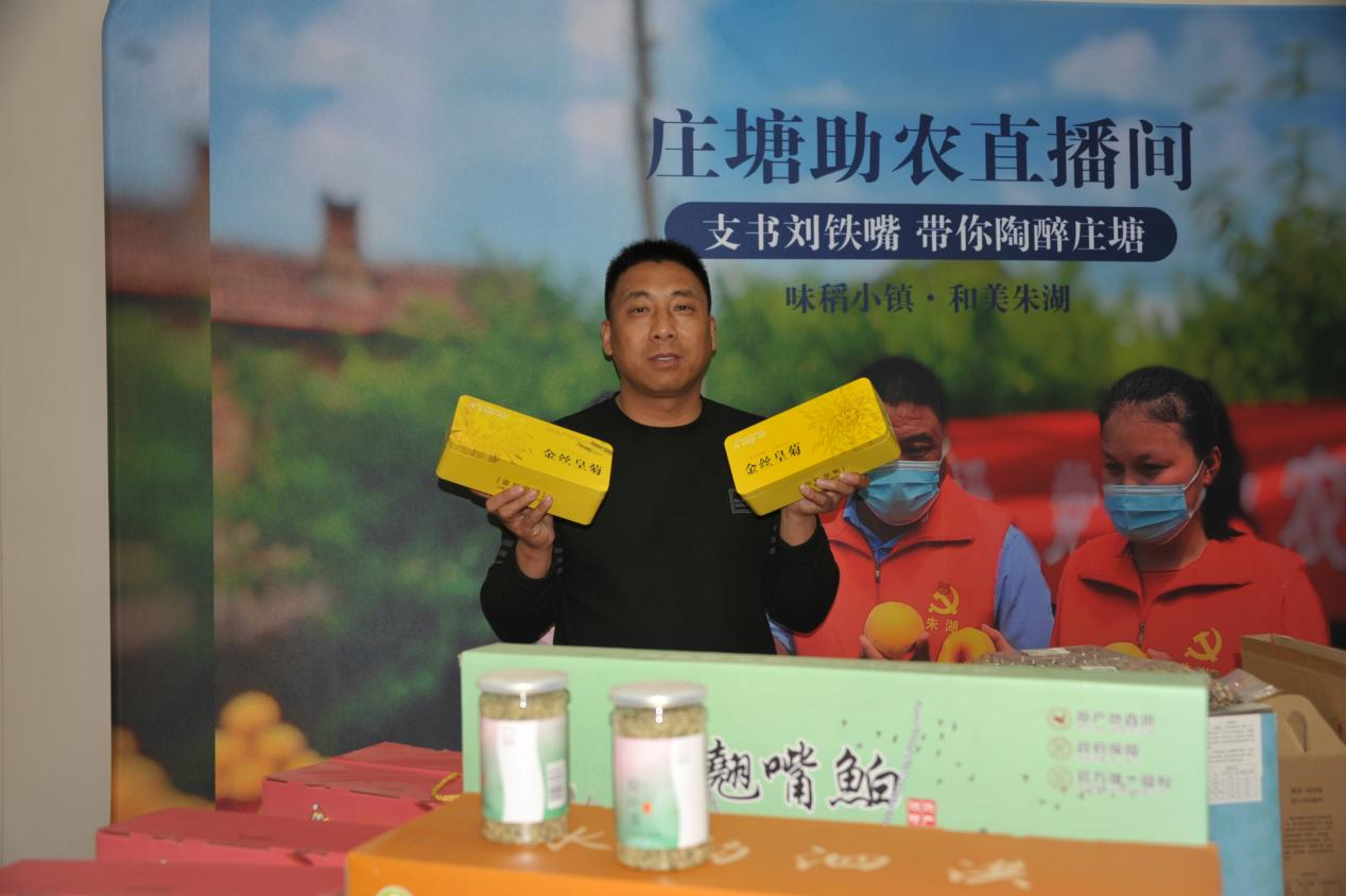 今年47歲的劉玉明,從2021年開始直播,讓當?shù)靥厣r(nóng)產(chǎn)品漫步“云端”。目前,他的視頻賬號“支書劉鐵嘴”有1.6萬名粉絲。沒有特殊工作安排或者意外情況,每晚7點他準時直播賣貨。從粉絲到草雞蛋,再到螃蟹、水產(chǎn),還有當?shù)靥禺a(chǎn)黃桃等,根據(jù)季節(jié)和群眾的需求,他的直播間里全是朱湖當?shù)丶般艉榭h內(nèi)的農(nóng)副產(chǎn)品。如今,他已經(jīng)堅持直播兩年多。